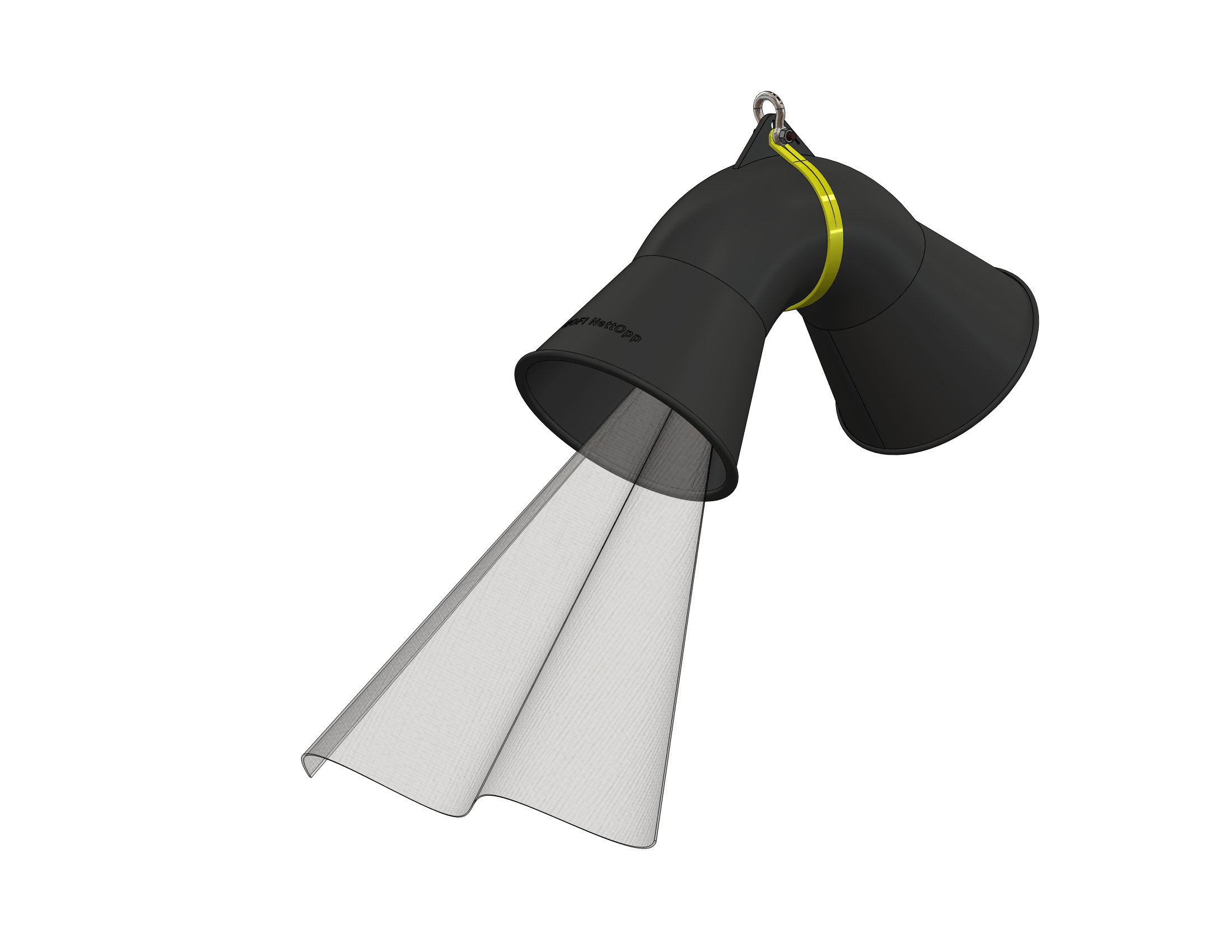 Å fjerne fuglenettet innebærer ofte at nettet kommer ned i vannet og at fisk går seg fast. Med NOFI NettOpp unngår man det. NettOpp heises opp og inn i merda. Et tau knyttet i nettets telne går opp gjennom NettOpp og ned, inn på capstan. Nettet løftes så rett opp og dras inn i båten. NOFI NettOpp er produsert i PEHD